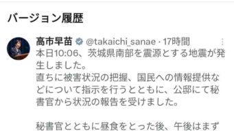 エッヂ 昨日の高市早苗の地震に関するポスト、「珍しく本人が書いたポスト」だと話題にwww