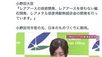 【中華悲報】小野田紀美大臣 『レアアースの技術開発、レアメタル低使用耐熱超合金の開発が進捗している』 マイペニ発狂へ…