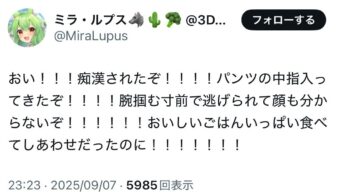 エッヂ 【画像】大手Vtuber「おい!痴漢されたぞ!」