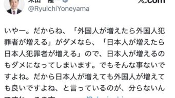 エッヂ 立憲議員「外国人の犯罪が増えるのがダメなら、日本人が増えるのもダメになるだろ💢」→意味不明だと話題にwww
