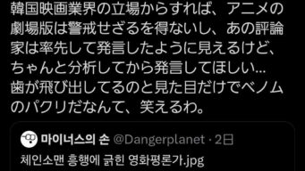 エッヂ 韓国人映画評論家「チェンソーマンが韓国でこんだけ流行ったのは観客の『レベル』が下がったから」→炎上
