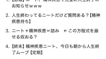 エッヂ エッヂ無職ニーフリ精神疾患人生終わってる部