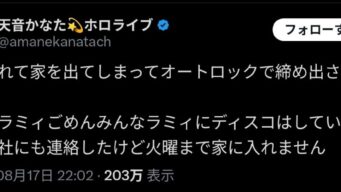 エッヂ 大人気VTuberさん、部屋に鍵を置き忘れオートロックに閉め出されてしまう…