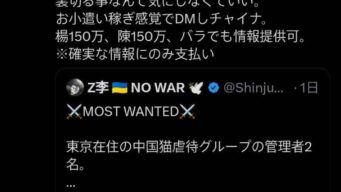 【画像】Z李さん、猫虐殺グループに激怒 「こいつらの情報300万で買う」
